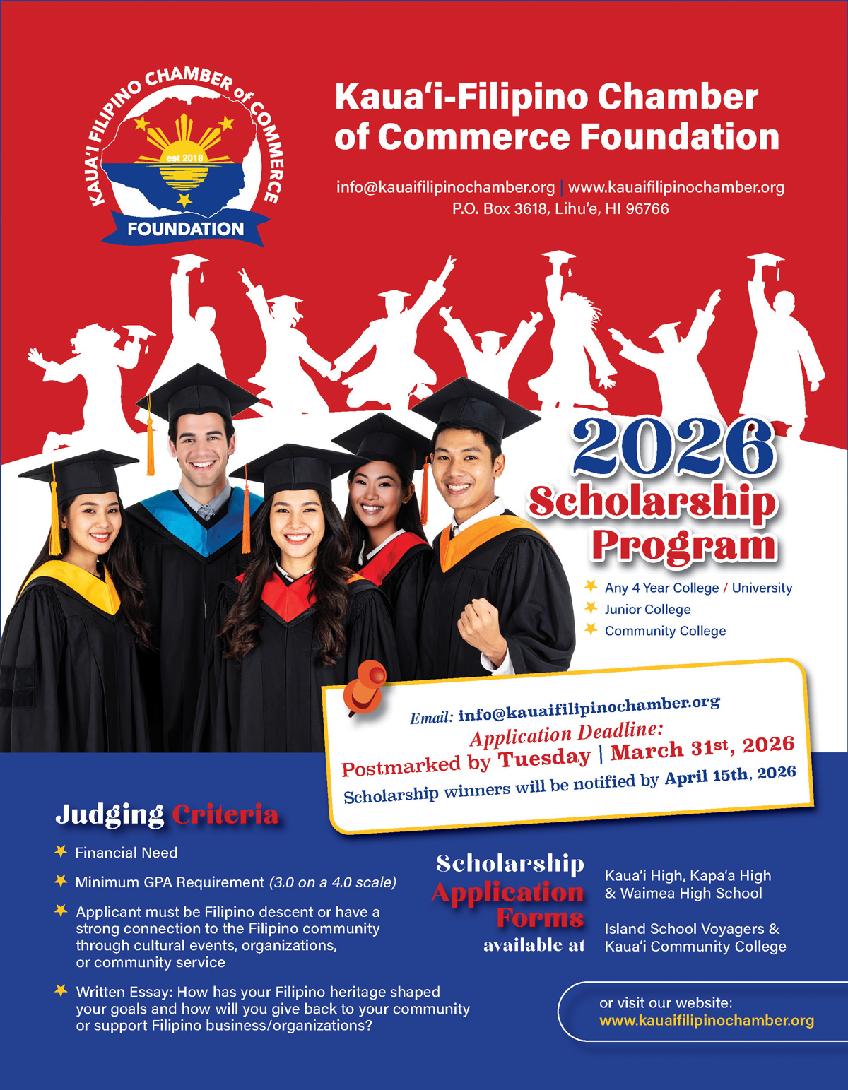 - Be a graduating student from any public or private school on Kauai
